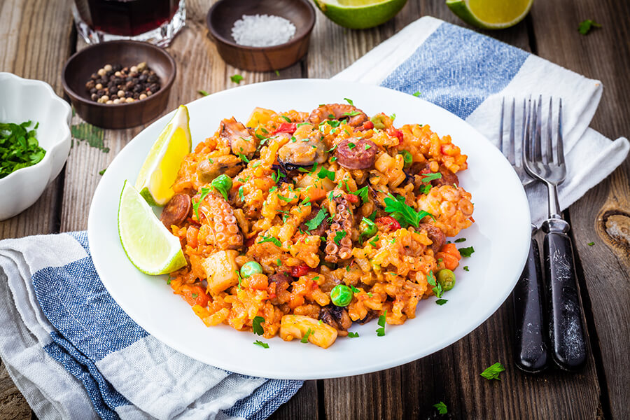 For the month of August, we are going with a Spanish Theme. Tasty Paella will be followed by a “to die for” Basque Cheesecake.